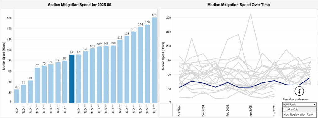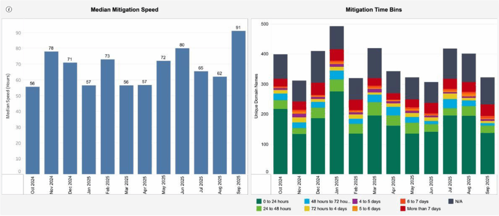 - Mitigation speed: Domains are displayed in time buckets for all registries and registrars.